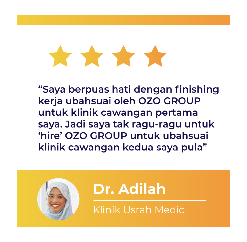Kini, kami pakar dalam pengubahsuaian klinik, SPA dan pejabat, menawarkan perundingan, rekabentuk 3D, dan bantuan dengan pematuhan CKAPS, didorong oleh motivasi teras kami untuk kepuasan pelanggan